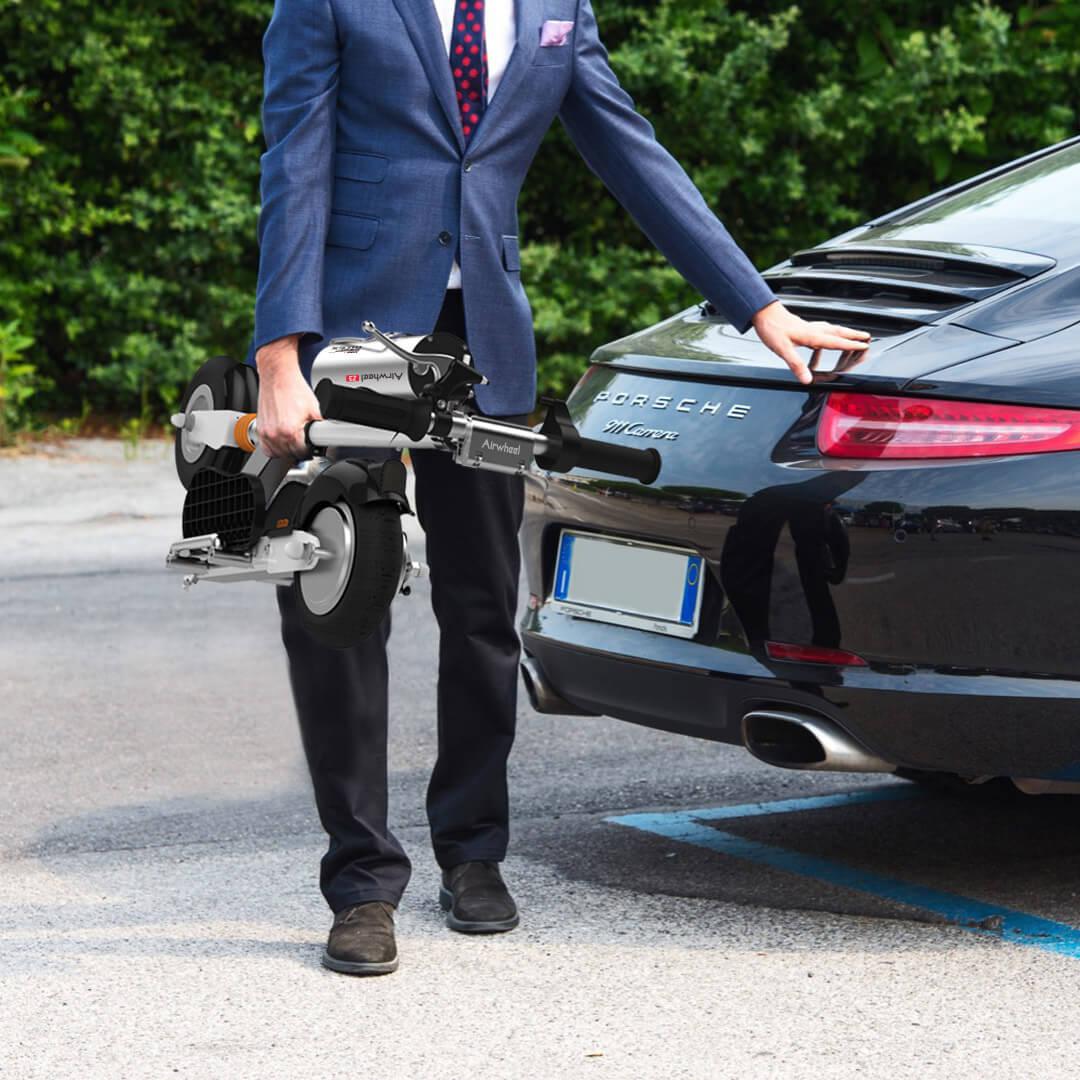 Airwheel电动平衡车Z3的车身框架是以超轻的合金材料制成,全车仅重11.8kg。它能够非常简单的进行折叠收放,折叠状态下的Z3非常的小巧,能够完美的收纳进背包中或是放进汽车的后备箱。便携的优势,能够让它轻松应付生活中的各种出行,譬如时下流行的“4+2”出游方式,一辆电动滑板车,多种出行应用场合,还有比这个更的吗?