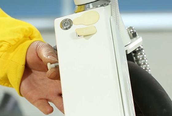爱尔威(Airwheel)Z5的电池放置于紧挨着踏板的电池槽内。