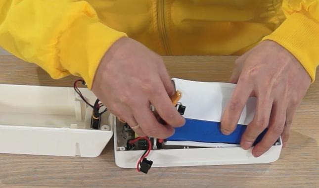 换上新电池,安装时需要注意电池安装的朝向、出线的位置。