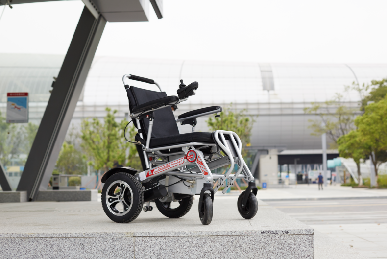 为了进一步拓展使用者的出行半径,爱尔威MBW-412智能轮椅的车体采用了可折叠的设计,折叠后能够放入汽车后备箱应对远途出行。并且,因为实现了电动折叠,所以折叠过程非常简单,仅需按下指定按键即可。