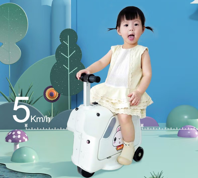 它的骑行速度仅可达到5km/h,刚好与成年人的步行速度一致,在帮助孩子轻松跟随家长步伐的同时,家长无需追赶便能随时监管骑行行李箱代步的孩子,避免发生危险。