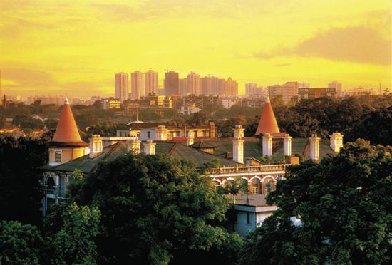广州沙面位于珠江岔口白鹅潭畔,占地面积330亩。第二次鸦片战争爆发后,英、法侵略者凭着签订的不平等条约,以“恢复商馆洋行”为借口,强迫两广总督租借沙面,雇工修护河堤,填土筑基,形成沙面岛,英、法两国在岛内分设领事馆。